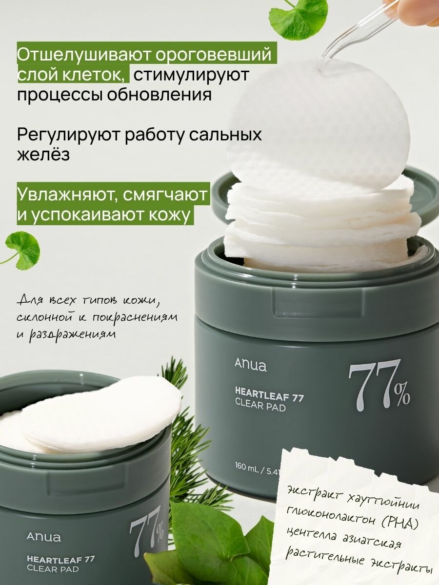Мягкие отшелушивающие тонер-пэды для лица с экстрактом хауттюйнии и глюконолактоном направлены на деликатное очищение кожи от ороговевшего слоя клеток.
