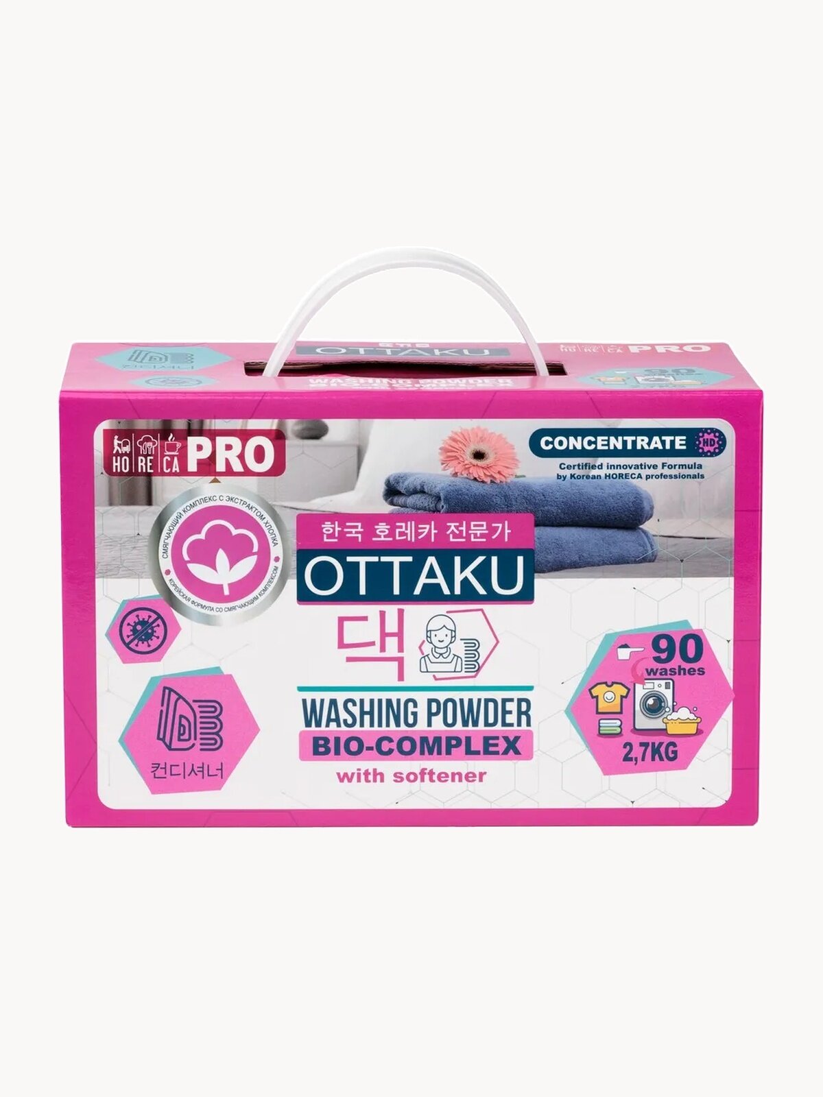 Средства для стирки OTTAKU вдохновлены Азией, где чистота, аккуратность и образцовый порядок составляют основу культуры. Профессиональные концентраты OTTAKU рекомендованы корейскими экспертами индустрии гостиничного и ресторанного бизнеса. Эксперты HORECA подтверждают важность трепетного отношения к уходу за одеждой, бельем и домашним текстилем, а также выдвигают самые высокие требования к эффективности средств для стирки. Продукты OTTAKU супер-концентрированы, расходуются экономично и обеспечивают максимальный результат при минимальной дозировке. Стиральный порошок OTTAKU BioComplex в розовой коробке: - эффективно отстирывает даже самые сложные загрязнения - экстракт хлопка бережно ухаживает за волокнами ткани и уменьшает образование заломов во время стирки - кондиционер в составе порошка смягчает и разглаживает ткань, обеспечивает антистатический эффект после высыхания и предотвращает появление катышков на любимых вещах - дарит вещам великолепный аромат, парфюмерный шлейф которого сохраняется надолго после стирки.