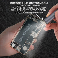 К отвертке Creation Space CS0802A идет набор дополнительных аксессуаров, который в разы облегчит мелкий ремонт и делает ее идеальным инструментом как для домашнего использования, так и для решения профессиональных задач. Гибкий удлинитель позволит работать в труднодоступных и узких местах. Треугольные медиаторы помогут безопасно вскрыть корпус смартфона, планшета, ноутбука. Помимо них, в комплект вложены: адаптер, патрон для сверл, щетка и пинцет.