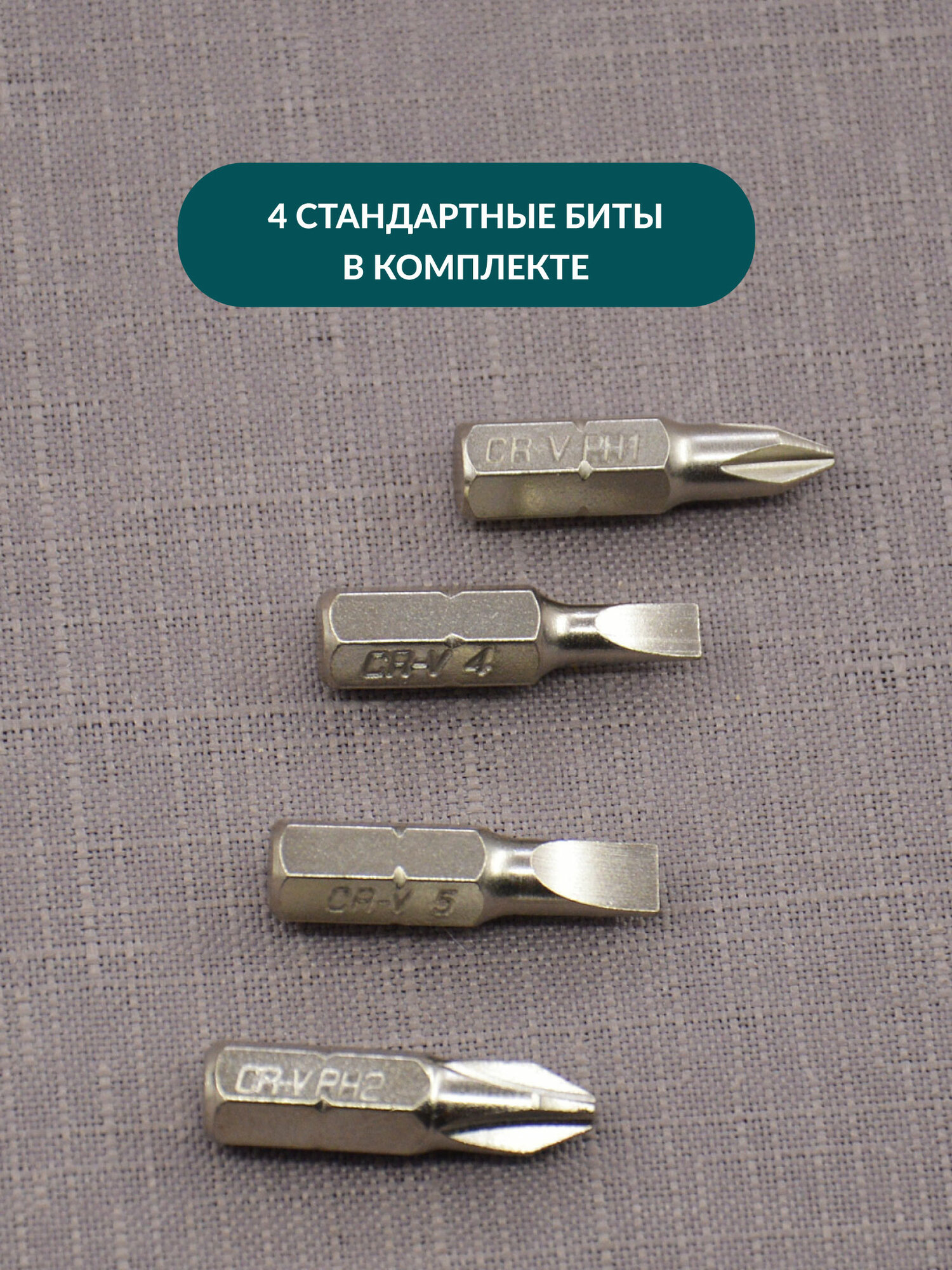 - тип бит в комплекте: шлицевая, крестовая;