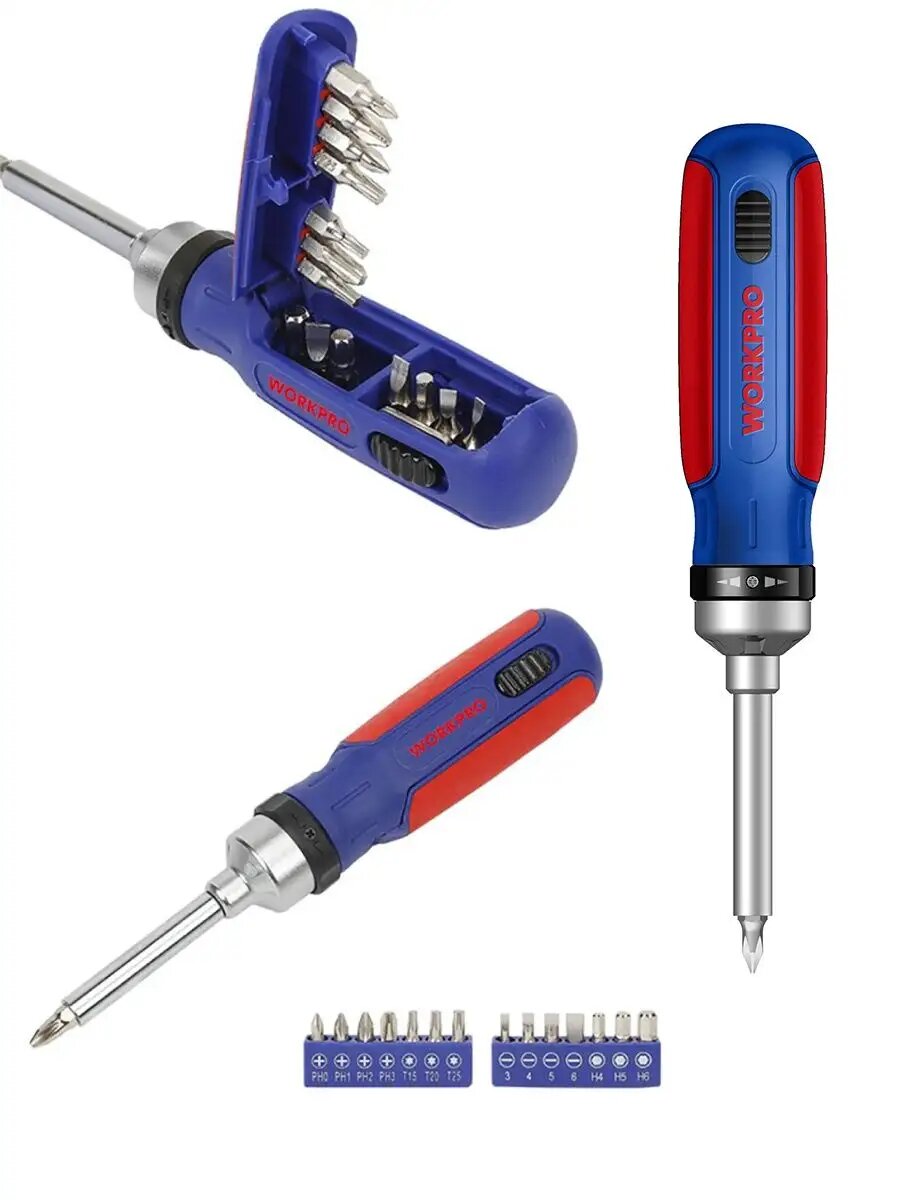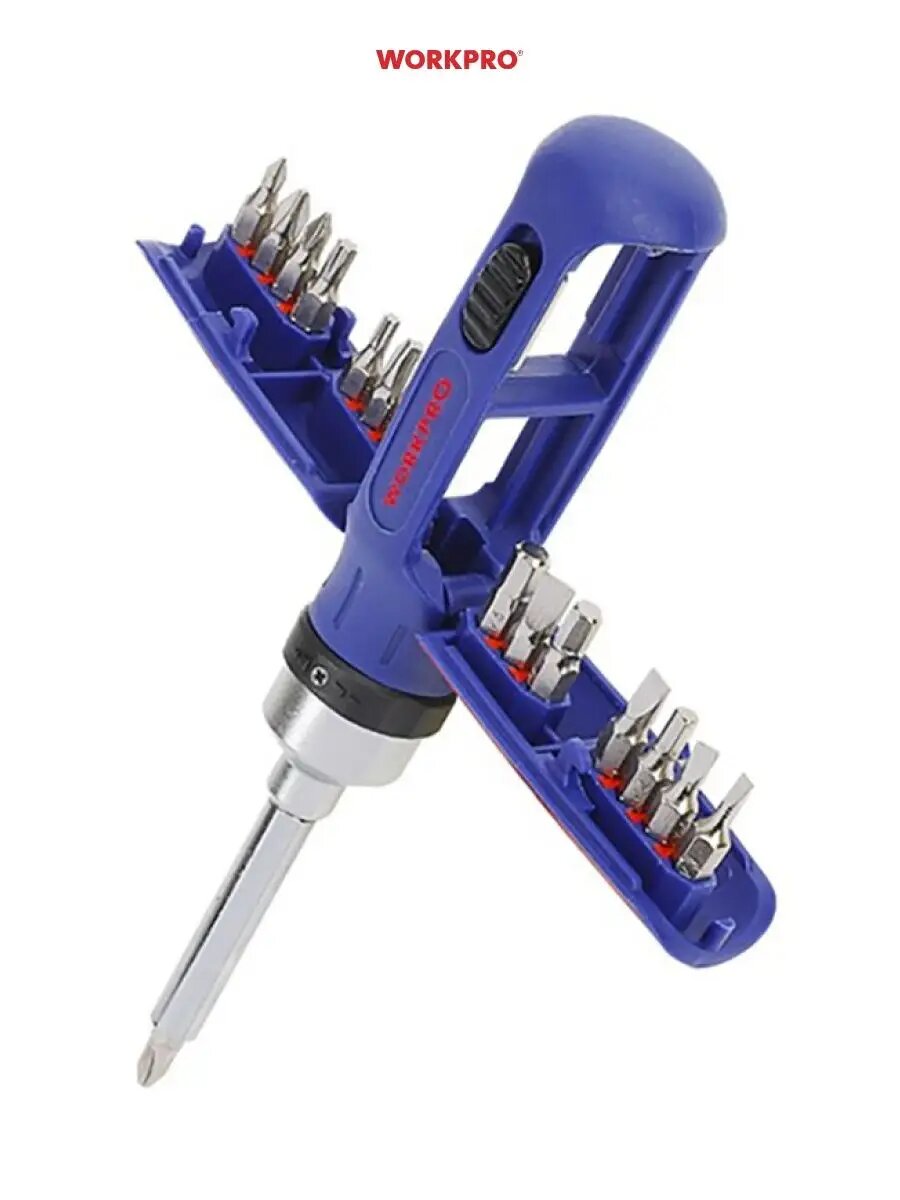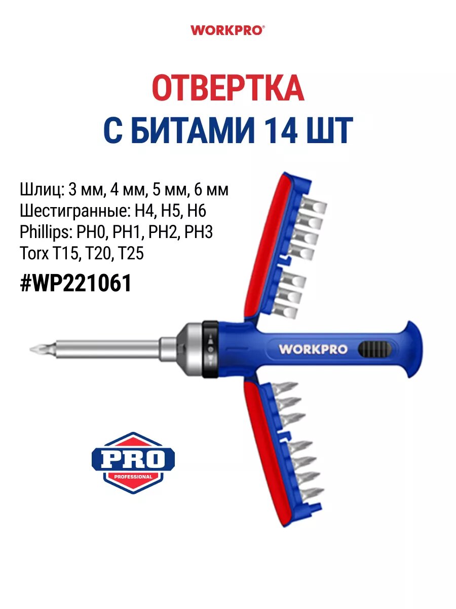 Отвертка с реверсом WP221061 WORKPRO, в наборе 14 бит во внутреннем отсеке: сравнение цен, характеристики, фото, актуальное наличие и цены.