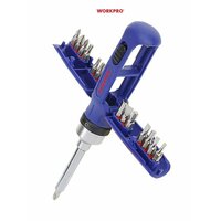 Отвертка с реверсом WP221061 WORKPRO, в наборе 14 бит во внутреннем отсеке