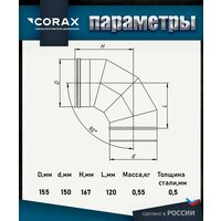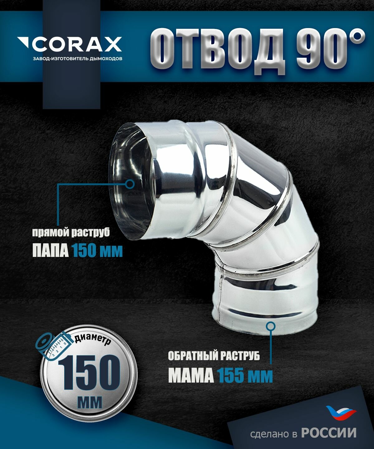 Отвод 90* нержавеющий (430/0.5мм) Ф150 Corax: сравнение цен, характеристики, фото, актуальное наличие и цены.