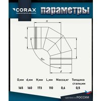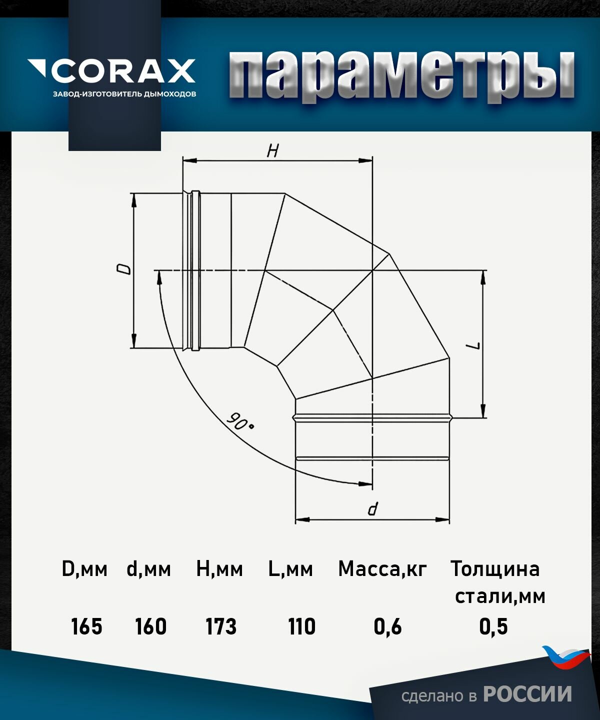| Подробная комплектация | Отвод для дымохода 90гр. (430/0,5) CORAX 1 шт. |