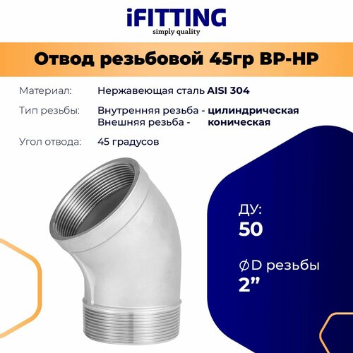 Отвод резьбовой 45 градусов предназначен для использования в системах трубопроводов. Уголок обеспечивает плавное изменение направления потока жидкости или газа внутри трубопровода благодаря своей конструкции с внутренней резьбой (цилиндрическая) и наружной резьбой (коническая). Отвод нержавеющий подходит для соединения различных элементов трубопровода и обеспечивает герметичное соединение при сборке. Отвод 45 градусов с резьбовым соединением сделан из нержавеющей стали AISI 304. Нержавеющая сталь AISI 304 обладает высокой устойчивостью к коррозии даже при эксплуатации под открытым небом, что делает ее привлекательным выбором для различных промышленных и бытовых приложений.