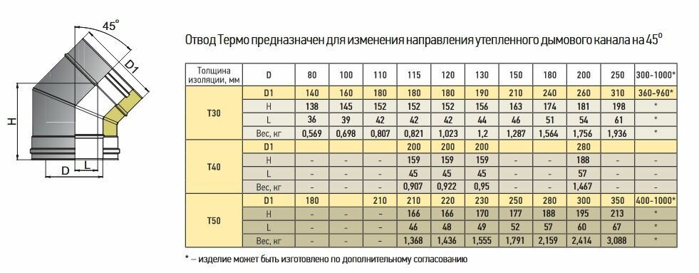 Отводы предназначены для изменения направления дымохода на требуемый угол. Отводы изготавливаются из цилиндрических секций, соединенных шовной сваркой. Отводы 45 градусов состоят из двух сегментов.