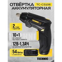 Отвёртка аккумуляторная TECHNICOM TC-CS106, 4В, 1.3мАч, 200 об/мин, LED фонарь, 10+1 ступеней крутящего момента: сравнение цен, характеристики, фото, актуальное наличие и цены.