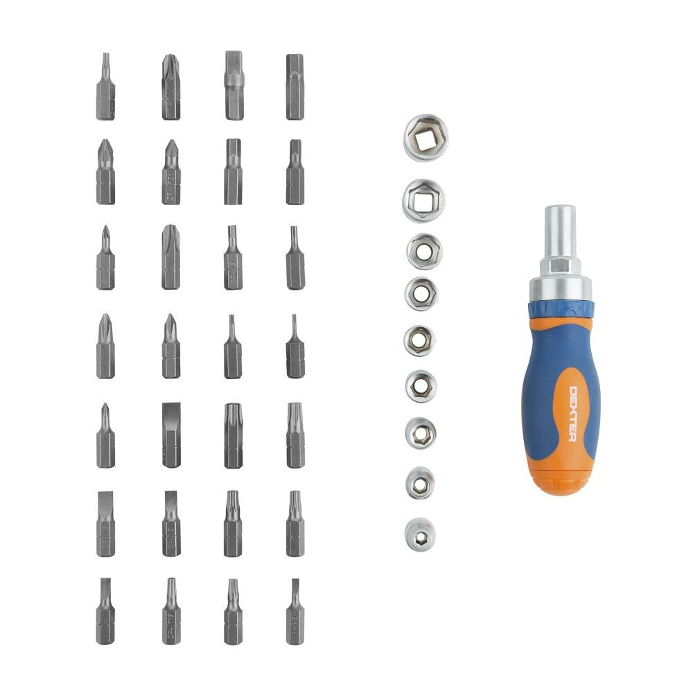 Отвёртка с набором бит и головок Dexter MER-226, 38 предметов