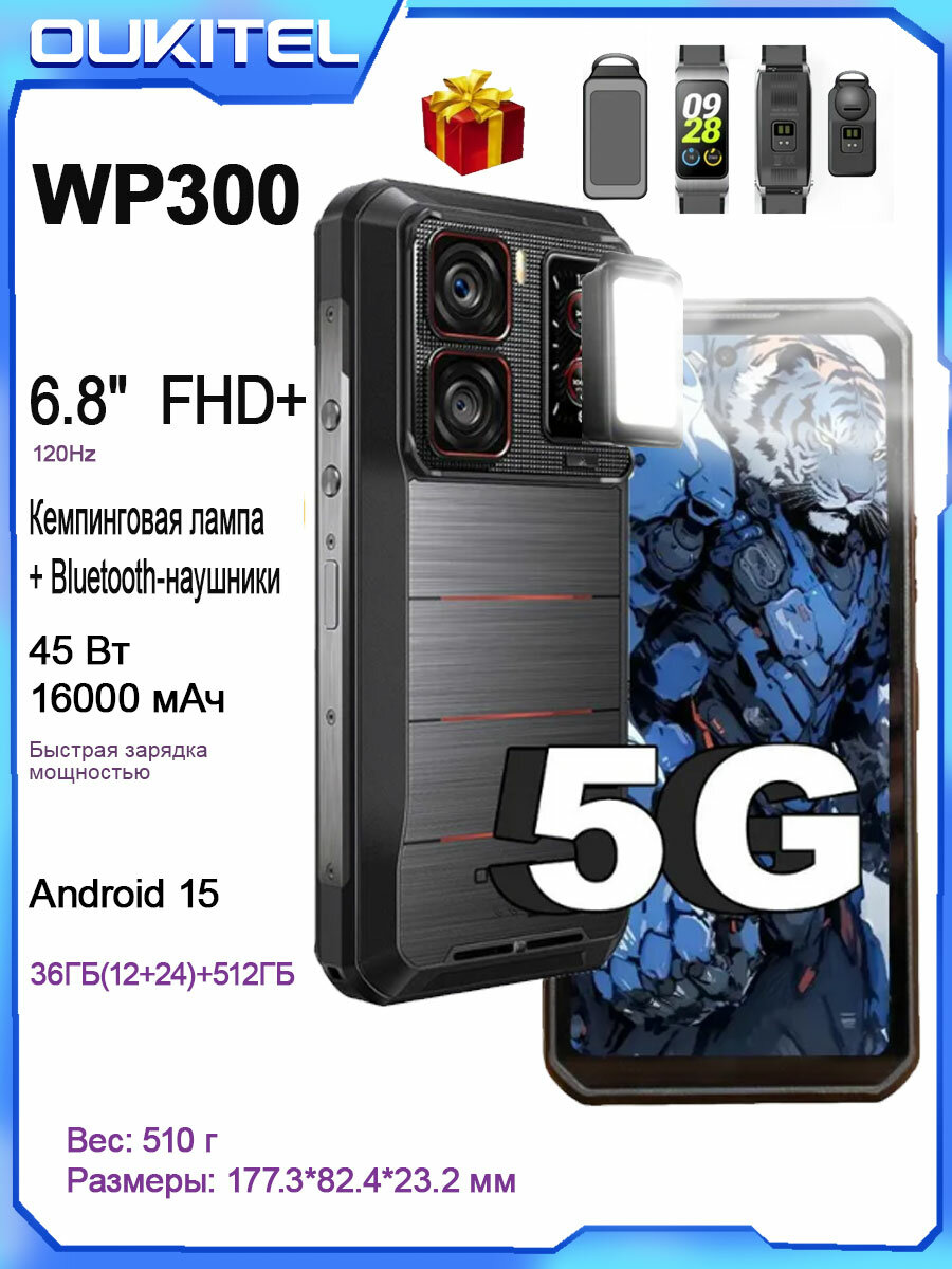 | Подробная комплектация | 1* WP200 Pro Смартфон; 1* Браслет для Bluetooth-гарнитуры; 1* Кабель для передачи данных; 1* Адаптер питания 45 Вт; 1* Защитный чехол; 1* Руководство пользователя; |