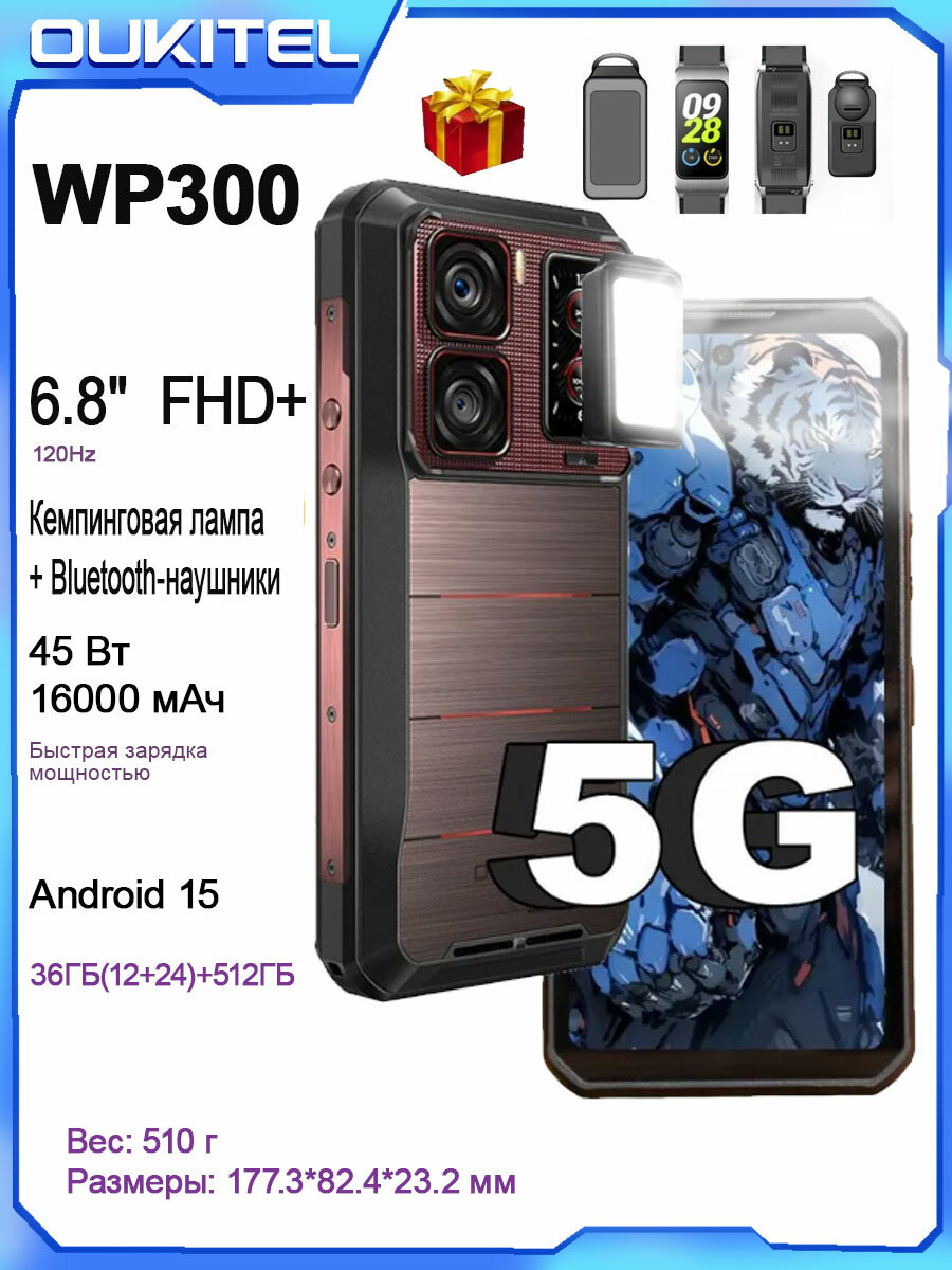 Его главная особенность заключается в модульной конструкции: 1,8-дюймовый дополнительный экран рядом с основной камерой можно разобрать как самостоятельный модуль и превратить в смарт-браслет с помощью прилагаемого браслета для мониторинга частоты сердечных сокращений и данных о физических нагрузках в режиме реального времени, а также в функции Bluetooth-гарнитуры для поддержки звонки и воспроизведение музыки; на задней крышке встроен модуль светодиодного освещения большой площади, который можно переключать на освещение для кемпинга или аварийные источники света для адаптации к условиям дикой природы и чрезвычайным ситуациям. Что касается аппаратной конфигурации, WP300 оснащен 6,8-дюймовым дисплеем FHD+ (разрешение 2460×1080, частота обновления 120 Гц), процессором Mediatek DNT 7050, 12 ГБ оперативной памяти + 512 ГБ памяти для хранения данных и работает под управлением системы Android 15 для обеспечения бесперебойной работы в многозадачном режиме. Система обработки изображений оснащена основной камерой на 108 Мп и фронтальной линзой на 32 Мп, которая поддерживает съемку в высоком разрешении; а аккумулятор емкостью 16000 мАч обеспечивает время автономной работы устройства в режиме ожидания до трех месяцев. Он поддерживает быструю зарядку мощностью 45 Вт и обратную зарядку мощностью 18 Вт, что позволяет заряжать дроны, спортивные камеры и другие устройства. другое оборудование 468. Характеристики защиты прошли сертификацию по водонепроницаемости и пылезащиту IP68 /IP69K и MIL-STD-810H, а также устойчивы к экстремальным температурам от -45 ℃ до 75 ℃, падению с высоты 1,5 метра и погружению в воду на глубине 1,5 метра в течение 30 минут. Толщина корпуса составляет 23,2 мм, а вес значительно выше, чем у обычных мобильных телефонов, что отражает их прочные характеристики.