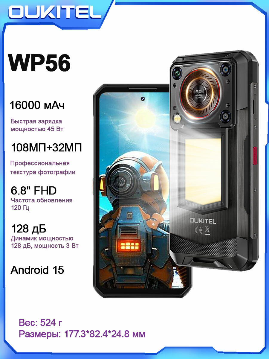 | Подробная комплектация | OUKITEL WP56 x1 Зарядное устройство x1 Кабель для передачи данных x1 Карточная игла x1 Руководство x1 Гарантийный талон x1 |