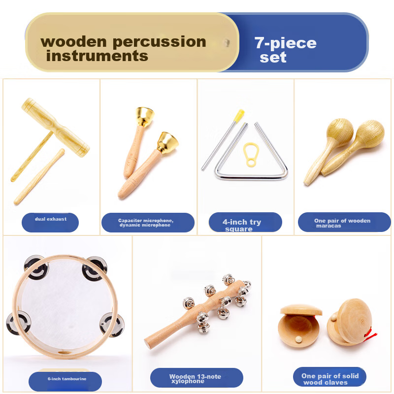 Oumeier Kindergarten Orff Percussion Instruments, Triangle, Children’s Musical Teaching Tools, Sand Hammer, Bell Drum, Double Gong, 7-Piece Set: сравнение цен, характеристики, фото, актуальное наличие и цены.