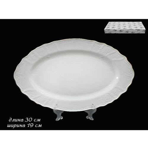 Овальное блюдо 30 см. MARIA GOLD Фарфор Lenardi (177088). Коллекция Maria Gold выполнена в стиле барокко и производится из тонкого белого фарфора c золотой каймой. Изделия украшены рельефным декором, изящно подчеркивающими благородство фарфора, узорные края выглядят элегантно и всегда в тренде посудной моды. Кроме наборов и сервизов в серию входят множество отдельных фарфоровых предметов, ассортимент которых с каждым годом расширяется. Эта посуда подходит как для ресторанов, бара и кафе, так и для дома. Не рекомендуется использовать в микроволновой печи и мыть в посудомоечной машине, по причине возможного повреждения декоративного покрытия.