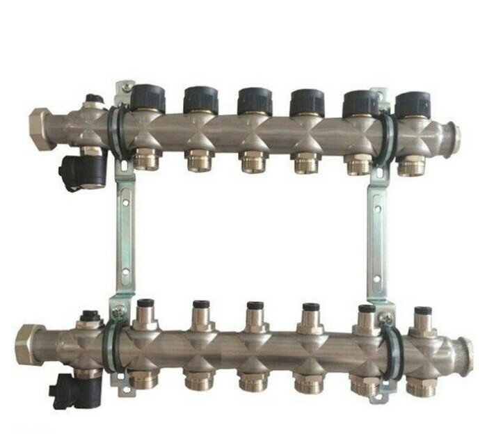 Гребенки , активно применяемые для обслуживания отопительных схем, характеризующихся принудительной циркуляцией. Уникальность данной техники заключается в ее способности распределять потоки теплоносителя равномерно, чтобы каждый отопительный прибор, включенный в систему, мог функционировать с максимальной отдачей и эффективностью. При этом, стандартная гребенка актуальна как для однотрубных, так и для двухтрубных установок, для систем панельного отопления. В зависимости от конфигурации исходной схемы, конструкция распределительной системы может быть самой разнообразной, однако чаще всего различные модификации отличаются количеством отводов, общей длиной и дополнительными устройствами. Так, для удобства эксплуатации и обслуживания коллекторов, они могут снабжаться специальными программами подключения и следующими приспособлениями: