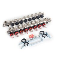 4 отопительных контура со встроенными расходомерами материал: нержавеющая сталь Коллектор состоит из подающей и обратной части коллектора, кронштейна для крепления со звукопоглощающими хомутами, бокового поворотного узла с воздухоотделителем, штуцера подачи /слива и заглушкой 3/4". Подающие части коллектора оснащены регулируемыми расходомерами со шкалой от 0 до 5 л/мин для балансировки расхода в каждом контуре. Обратные части коллектора могут быть оборудованы сервоприводами (сервомоторами) при автоматическом регулировании. Максимальная рабочая температура: 60°С (максимальная до 90 °С)Рабочее давление: 6 бар Размеры подключения: подающие 1" с накидными гайками,выходы 3/4" НР (Евроконус)