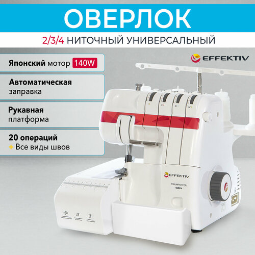 Оверлок EFFEKTIV Triumphator 1800X (красный) 2-3-4 ниточный с функцией автоматической заправки нитей: сравнение цен, характеристики, фото, актуальное наличие и цены.