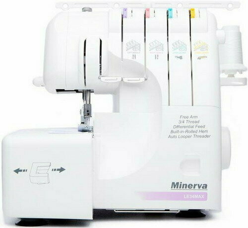Купить Оверлок Minerva LE34MAX, дифференциальная подача, мягкий чехол, 8 швейных операций с доставкой по всей России.