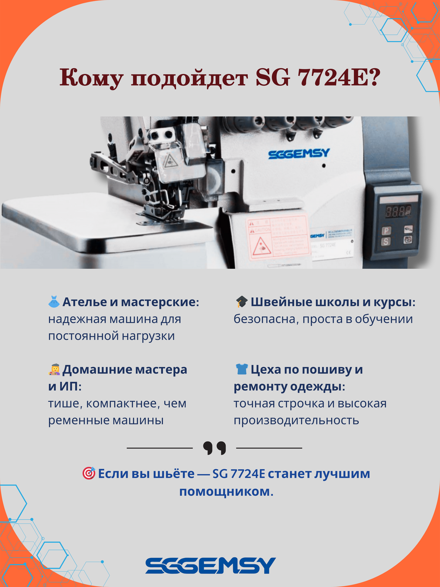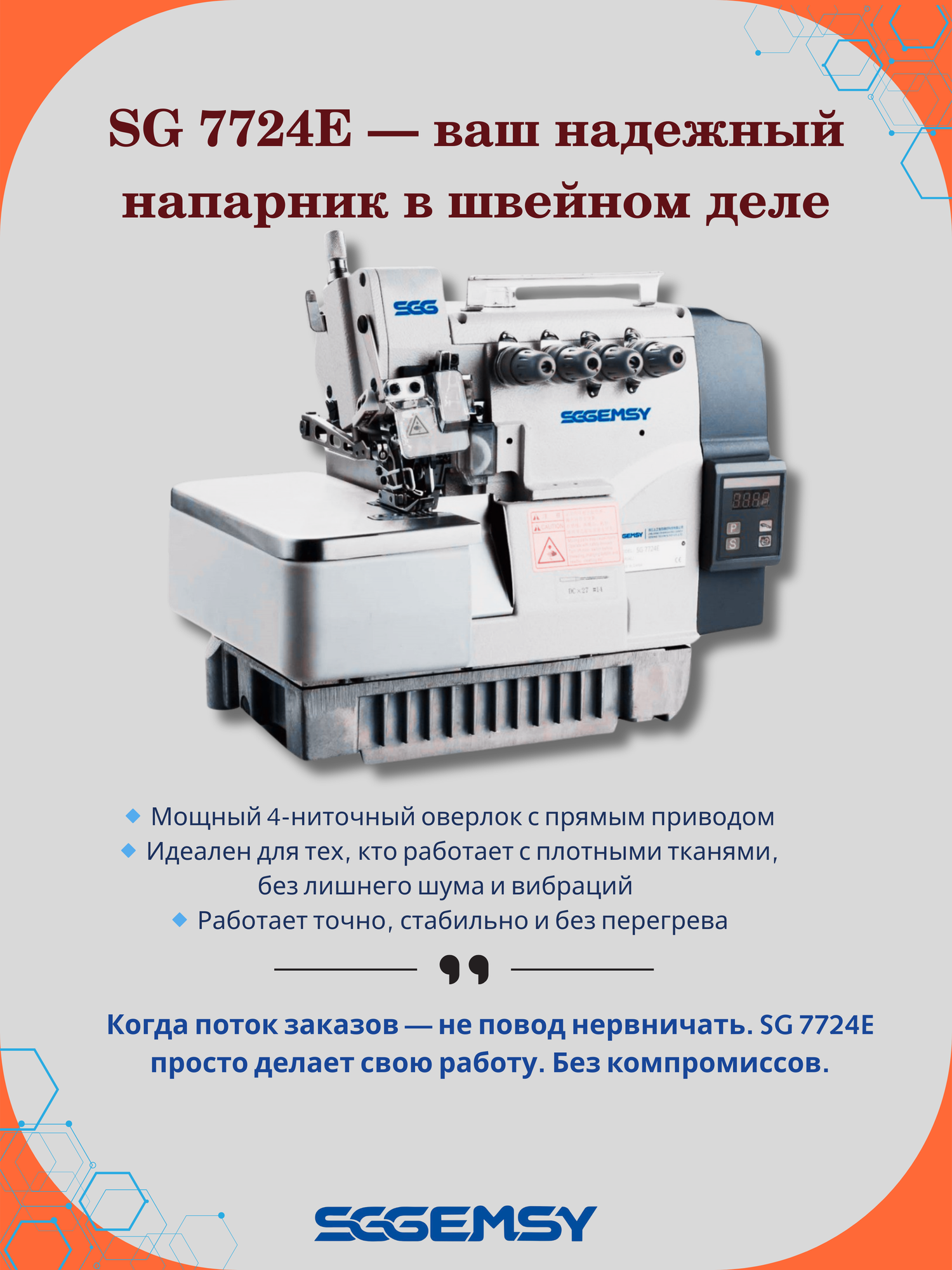 4-х ниточный 2-х игольный краеобмёточный оверлок SGGEMSY SG7724E для лёгких и средних материалов со встроенным мотором прямого привода (со столом в комплекте)