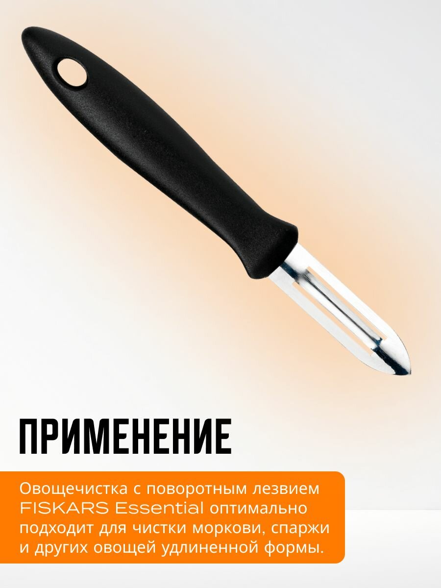 Купить Овощечистка Fiskars Essential 1065585, нержавеющая сталь, мытье в посудомойке с доставкой по всей России.