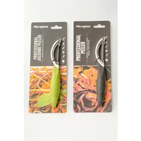 Овощечистка может облегчить приготовление пищи домашнему повару. Эту овощечистку удобно держать эргономичной ручкой — она позволяет нарезать тонкие полоски фруктов и овощей для салатов и украшения, умело обводя мягкие и твердые фрукты, а также такие овощи, как морковь, репа, кабачки, картофель, пастернак, манго, яблоки, тыква с орехами, что гарантирует безупречный результат каждый раз. В отличие от традиционных овощечисток, профессиональная овощечистка немного тяжелее.