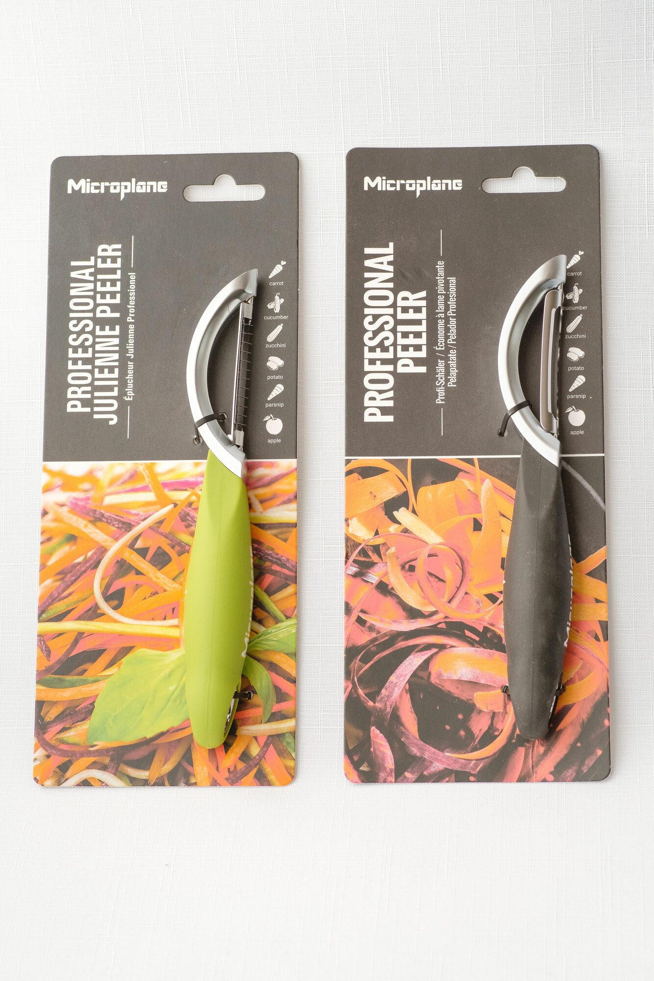 Поворотная фрукто-овощечистка Microplane оснащена очень острым универсальным инструментом, который отлично подходит для картофеля, яблок и моркови, не прилагая особых усилий!