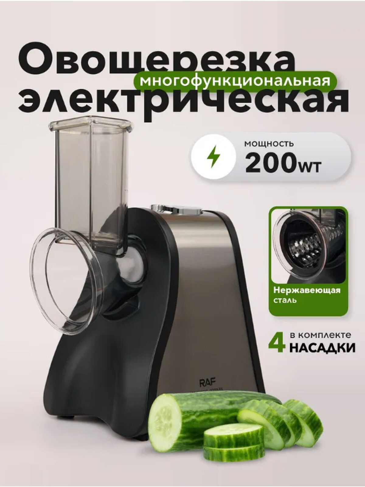 Овощерезка электрическая для овощей c насадками многофункциональная RAF.3390: сравнение цен, характеристики, фото, актуальное наличие и цены.