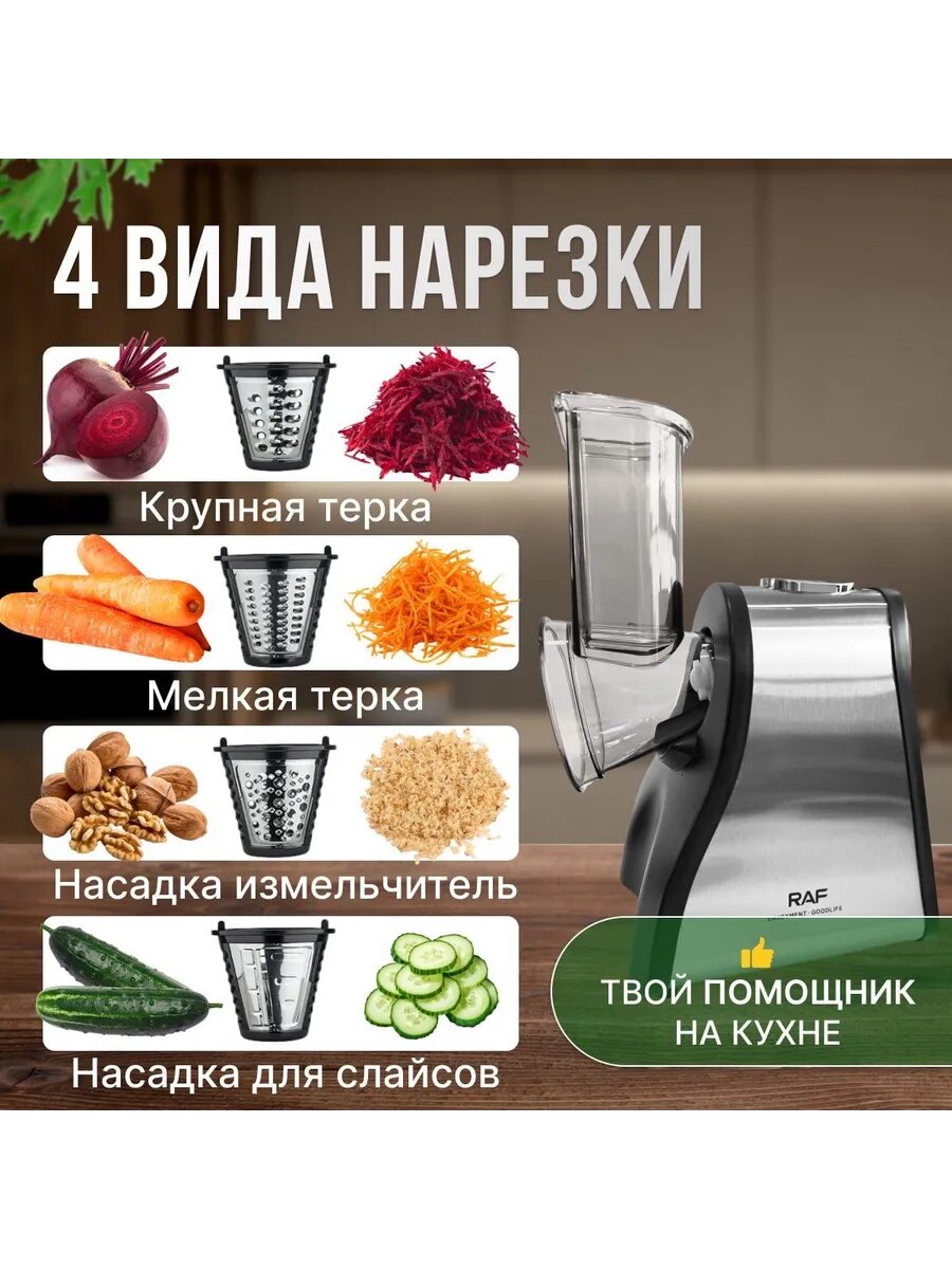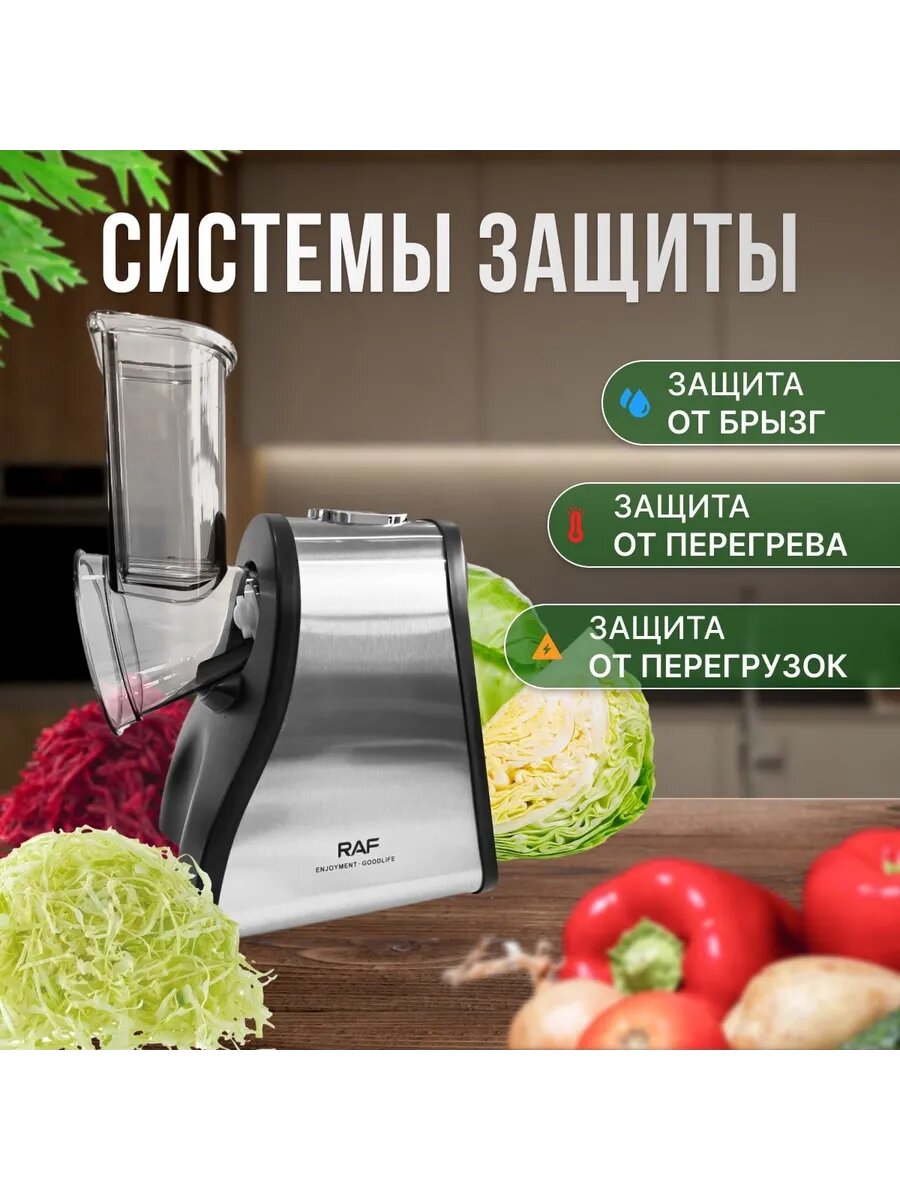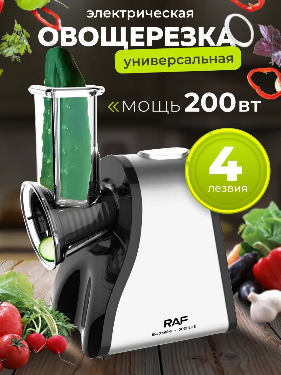 Овощерезка электрическая для овощей c насадками многофункциональная RAF.3390: сравнение цен, характеристики, фото, актуальное наличие и цены.