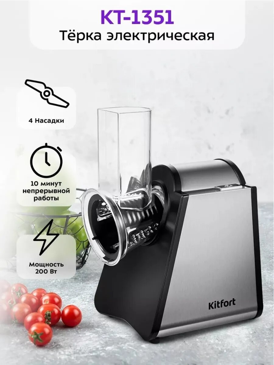| Подробная комплектация | Электрическая терка; 4 насадки; инструкция |