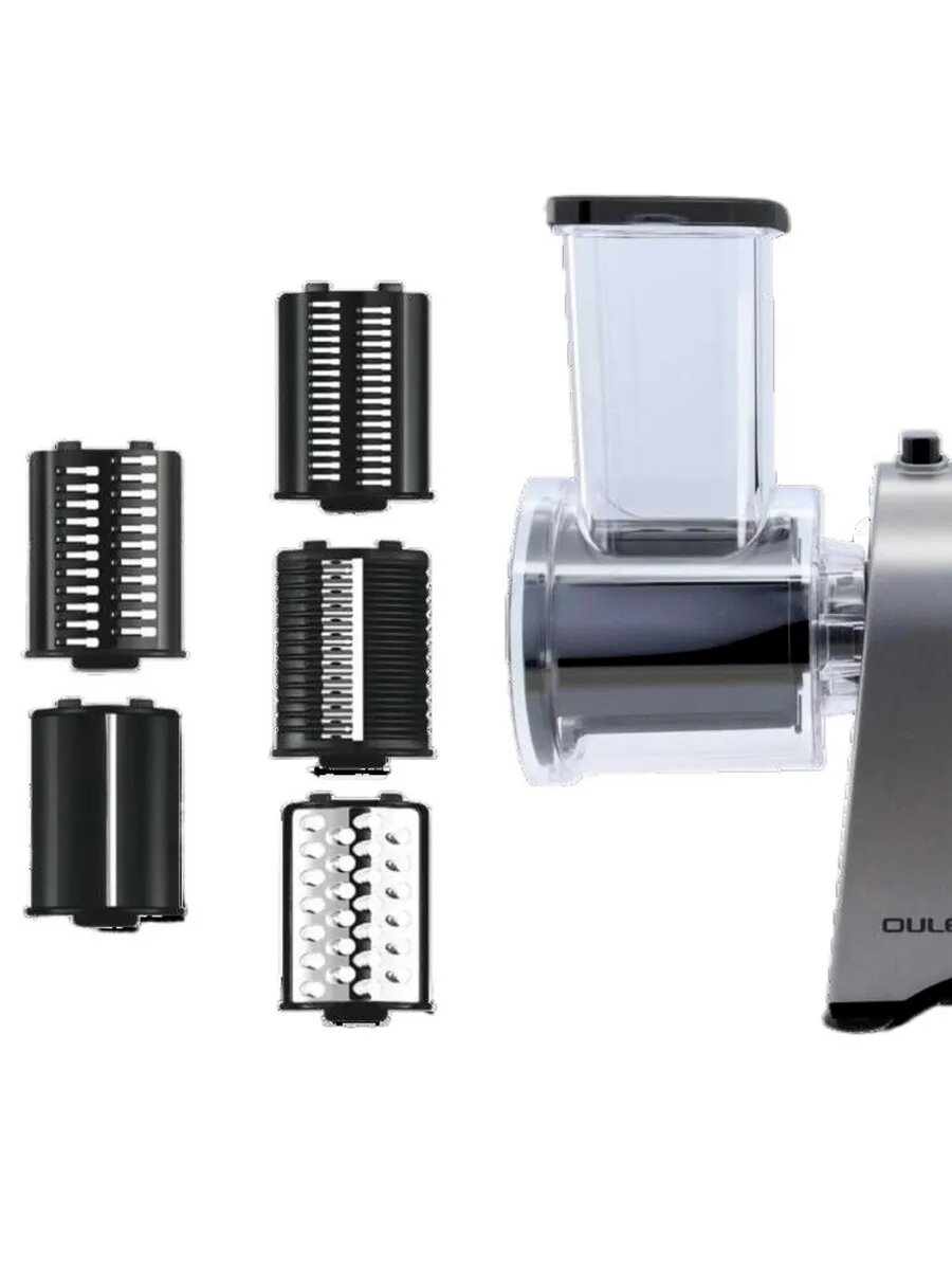 Многофункциональная электрическая овощерезка OULEMEI OLM-QCS001 — удобство и скорость на вашей кухне Эта овощерезка предназначена для быстрой и эффективной нарезки, измельчения и терки овощей и фруктов. Мощный двигатель на 250 Вт позволяет справляться с любыми задачами на кухне без лишних усилий. В комплект входят пять различных насадок, каждая из которых предназначена для определенного вида нарезки или измельчения продуктов. Сменить насадки легко и быстро, а компактные размеры прибора позволяют разместить его даже на небольшой кухне. Безопасность пользователя обеспечивается прижимным и нажимным стержнями, а также входной крышкой, которая защищает руки от случайного контакта с рабочими элементами. Корпус выполнен из прочного пластика и металла, что гарантирует долговечность и устойчивость к износу. Прибор легко очищается после использования и отличается простой установкой. Благодаря своей функциональности и надежности OULEMEI OLM-QCS001 станет отличным помощником для приготовления различных блюд, экономя ваше время и силы. Основные характеристики: Тип: овощерезка Функции: измельчитель, рубка, терка, шинковка, ломтерезка Мощность: 250 Вт Материал корпуса: металл, пластик Цвет корпуса: серый Страна производства: Китай OULEMEI OLM-QCS001 — универсальный и надежный инструмент для современной кухни.