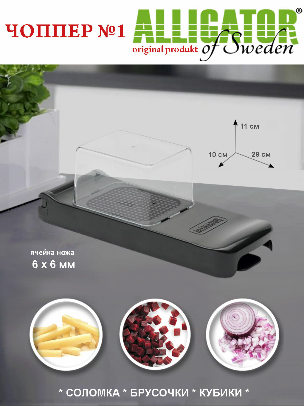 Купить Овощерезка Alligator Chopper, ячейка ножа 6х6 мм, черный, Швеция с доставкой по всей России. Овощерезка Alligator Chopper, ячейка ножа 6х6 мм, черный, Швеция: сравнение цен, характеристики, фото, актуальное наличие и цены.