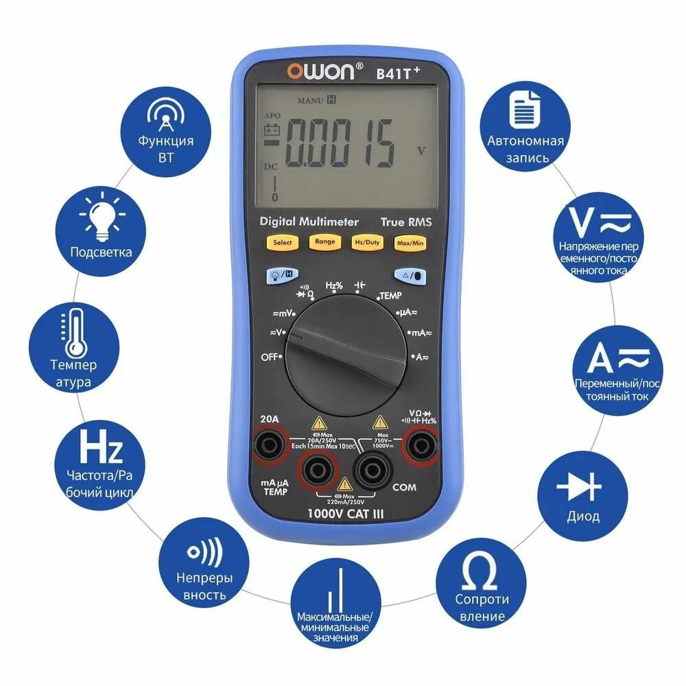 Купить Мультиметр B41T+ OWON iOS Android Windows Bluetooth 4.0 высокая точность разрядность 22000 с доставкой по всей России. Мультиметр B41T+ OWON iOS Android Windows Bluetooth 4.0 высокая точность разрядность 22000: сравнение цен, характеристики, фото, актуальное наличие и цены.