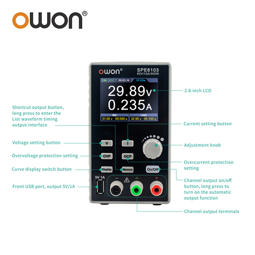 OWON SPE6103 60V 10A 300 Вт регулируемого постоянного тока питания USB стабилизированного постоянного напряжения: сравнение цен, характеристики, фото, актуальное наличие и цены.