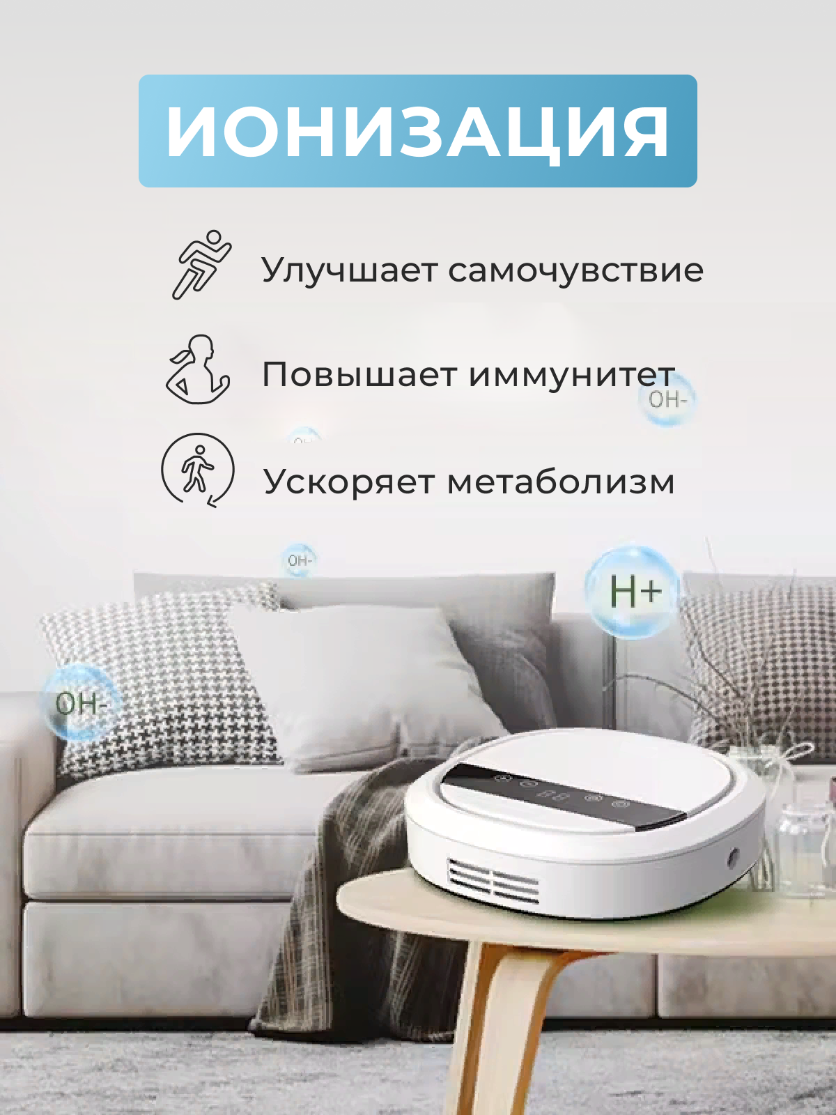 Ионизатор-озонатор для квартиры помогает справиться с аллергией и способствует снижению распространения заболеваний, совершает очистку и дезинфекцию. Функция ионизации направлена на устранение аллергенов и пыли в воздухе. Ионизатор предназначен для постоянной эксплуатации и может включаться в комнатах, где находятся пользователи. Ионизация минерализует водопроводную воду. Выход озона 400 мг/ч, хватает на помещения площадью до 50 кв. м. Озонирование поможет при болезнях справиться с вирусами и бактериями в воздухе. Озонированную воду можно использовать для умывания, чтобы кожа стала бархатистой и для ванн, чтобы вылечить кожные заболевания. Озанатор ионизатор для продуктов питания подходит для обработки овощей, мяса, рыбы. Озонатор еды очистит от пестицидов и увеличит срок хранения. Устранитель запаха кошачьего лотка поможет избавиться от неприятных запахов после покраски, табачного дыма, туалета кошек, от запаха сигарет, мочи собак. Озонатор для автомобиля можно использовать в машине. Поглотитель запаха для помещений станет вашим помощником от запаха животных.