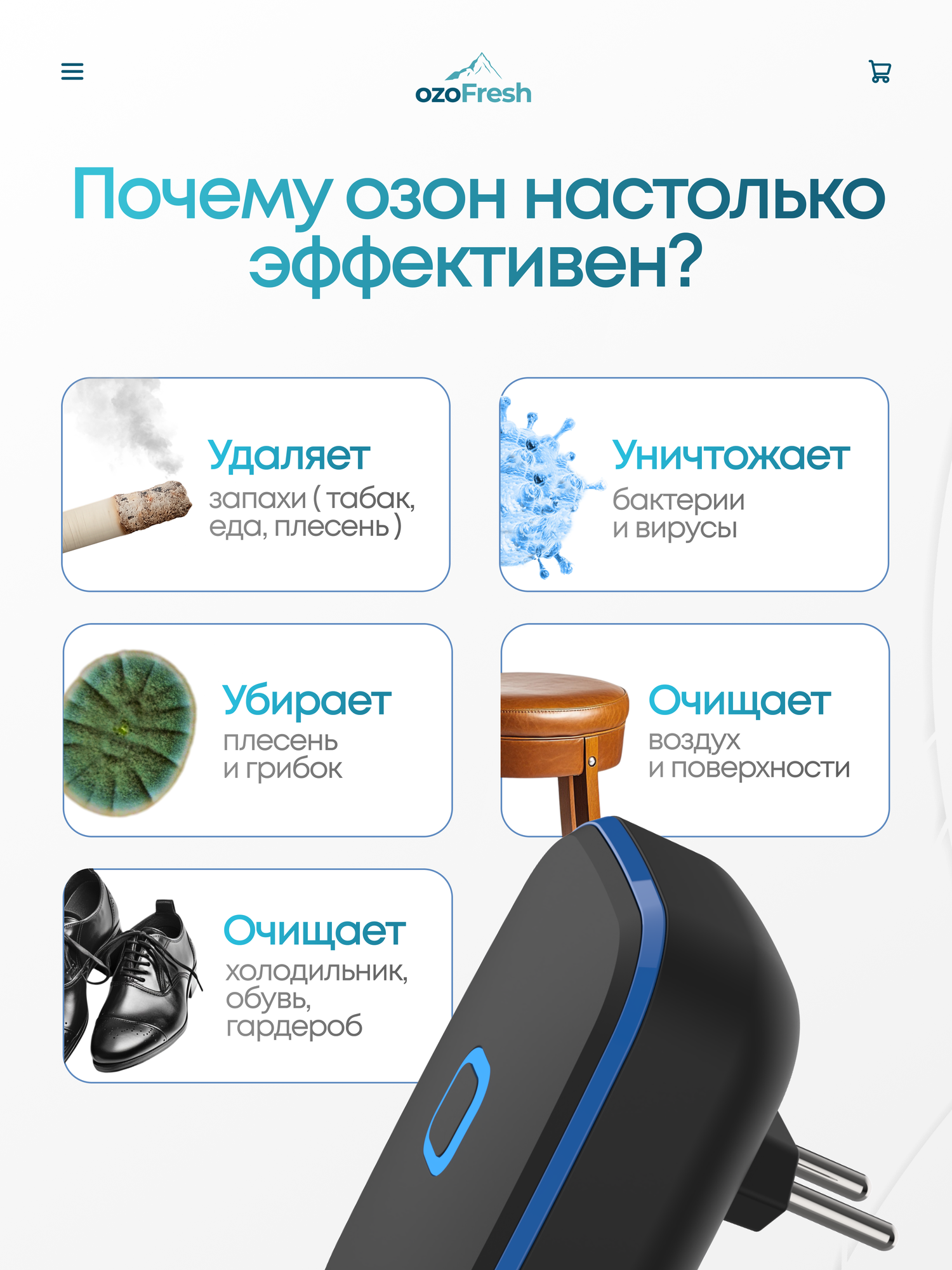 Озоновый освежитель воздуха работает от стандартной розетки и подходит для небольших помещений и замкнутых пространств.