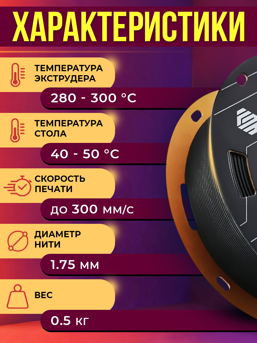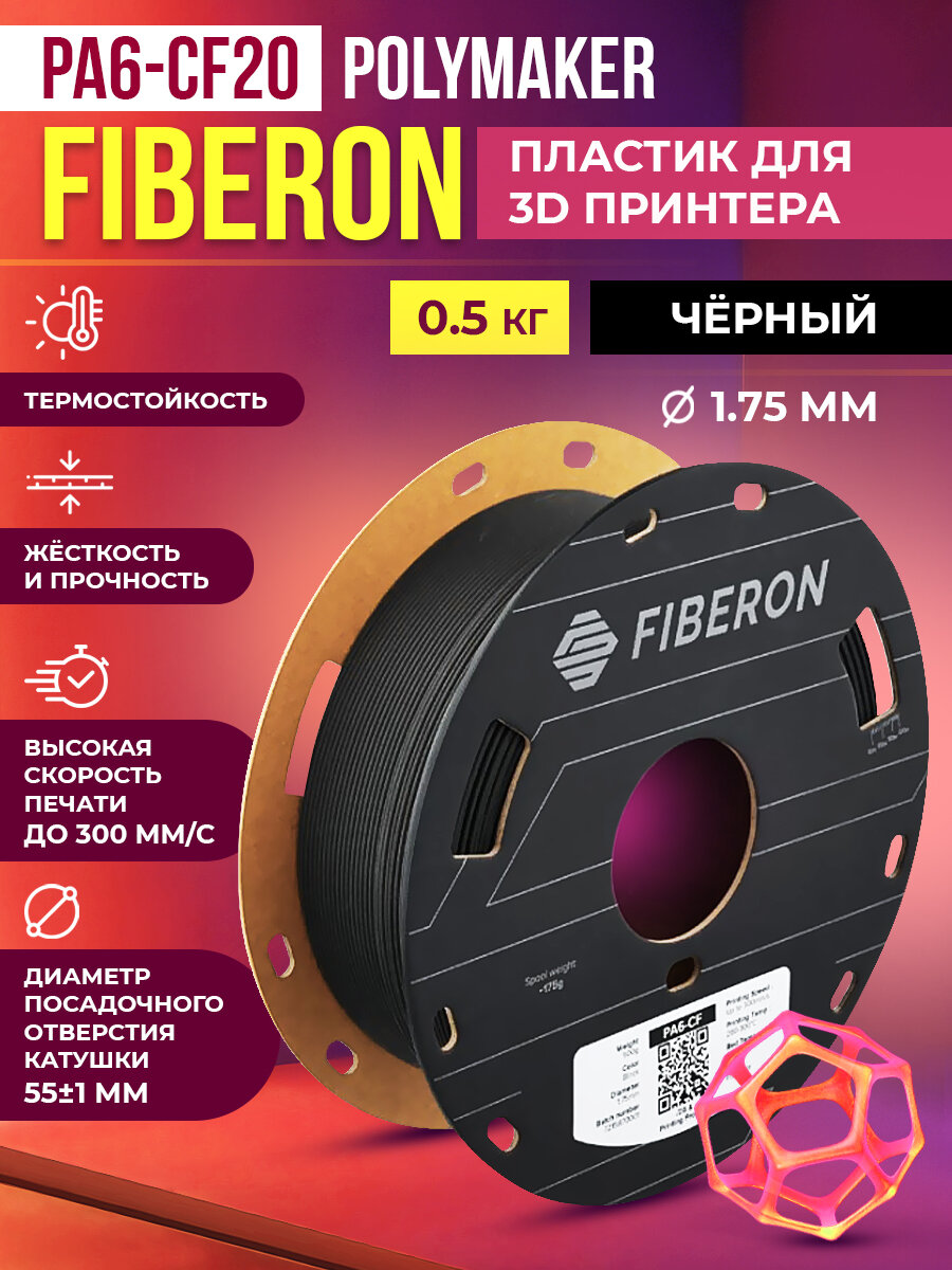 Купить PA6-CF20 Fiberon пластик Polymaker для 3D принтера 1.75 мм, Чёрный, 0.5 кг с доставкой по всей России.