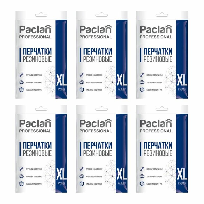 Купить Paclan Professional Перчатки латексные с хлопковым напылением желтые, размер XL, 6 уп с доставкой по всей России.