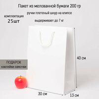 Наши подарочные однотонные пакеты идеально подходит в качестве элитной подарочной упаковки. Элегантный белый пакет 30х40х13, подойдет для таких подарков, как небольшая бытовая техника, одежда или обувь, детские игрушки или книги и т. д.