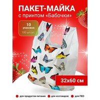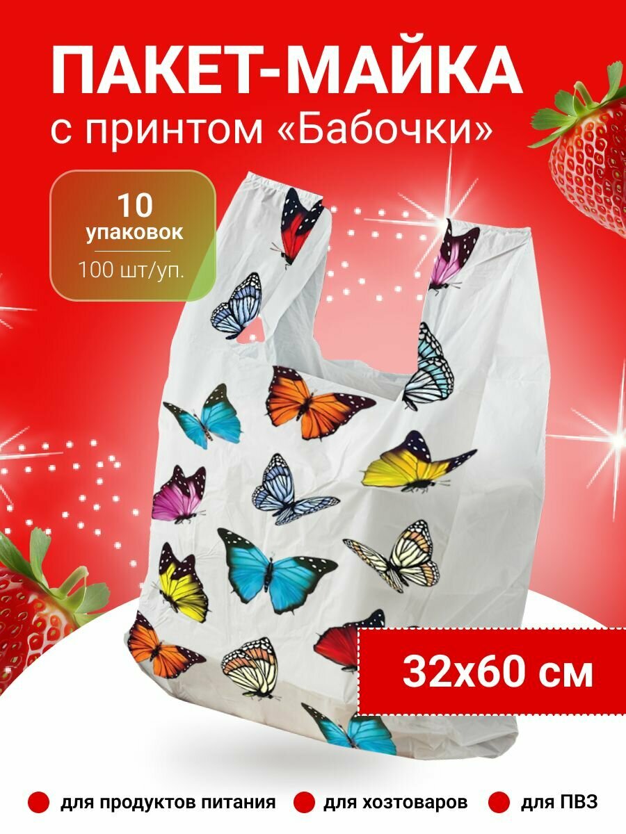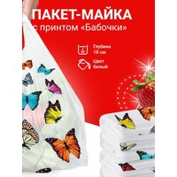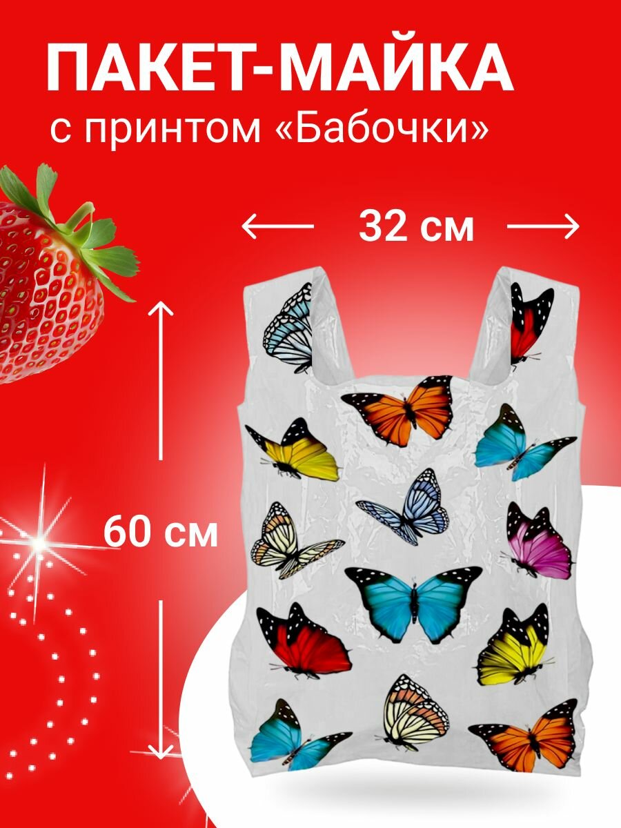 Купить Пакет майка 32х60 см. белый (разноцветный принт «Бабочки»), 18 мкм. (100 штук в упаковке), 10 упаковок с доставкой по всей России. Пакет майка 32х60 см. белый (разноцветный принт «Бабочки»), 18 мкм. (100 штук в упаковке), 10 упаковок: сравнение цен, характеристики, фото, актуальное наличие и цены.