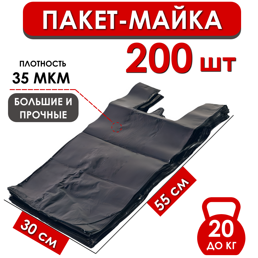 Усиленный полиэтиленовый пакет майка от ProTent, размер 30х55 см, плотность 35 мкм, оптовая упаковка 200 штук - представляет собой надежное и практичное решение для упаковки различных товаров. Набор пакетов маек подходит для использования на рынке, для супермаркета, магазина или ПВЗ - пунктах выдачи заказов интернет-магазинов.