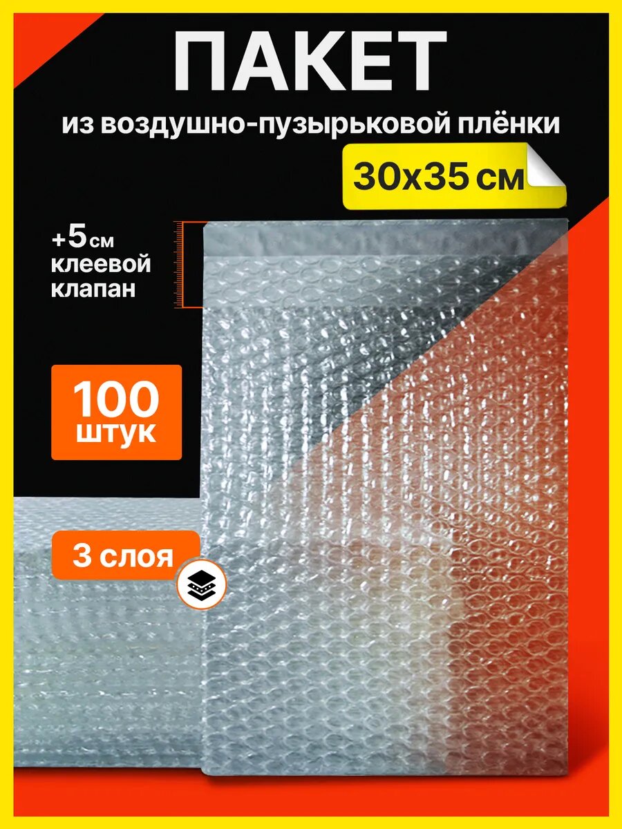 Пакет воздушно-пузырчатый, ВПП с клеевым клапаном, трехслойный 30х35см 100шт: сравнение цен, характеристики, фото, актуальное наличие и цены.