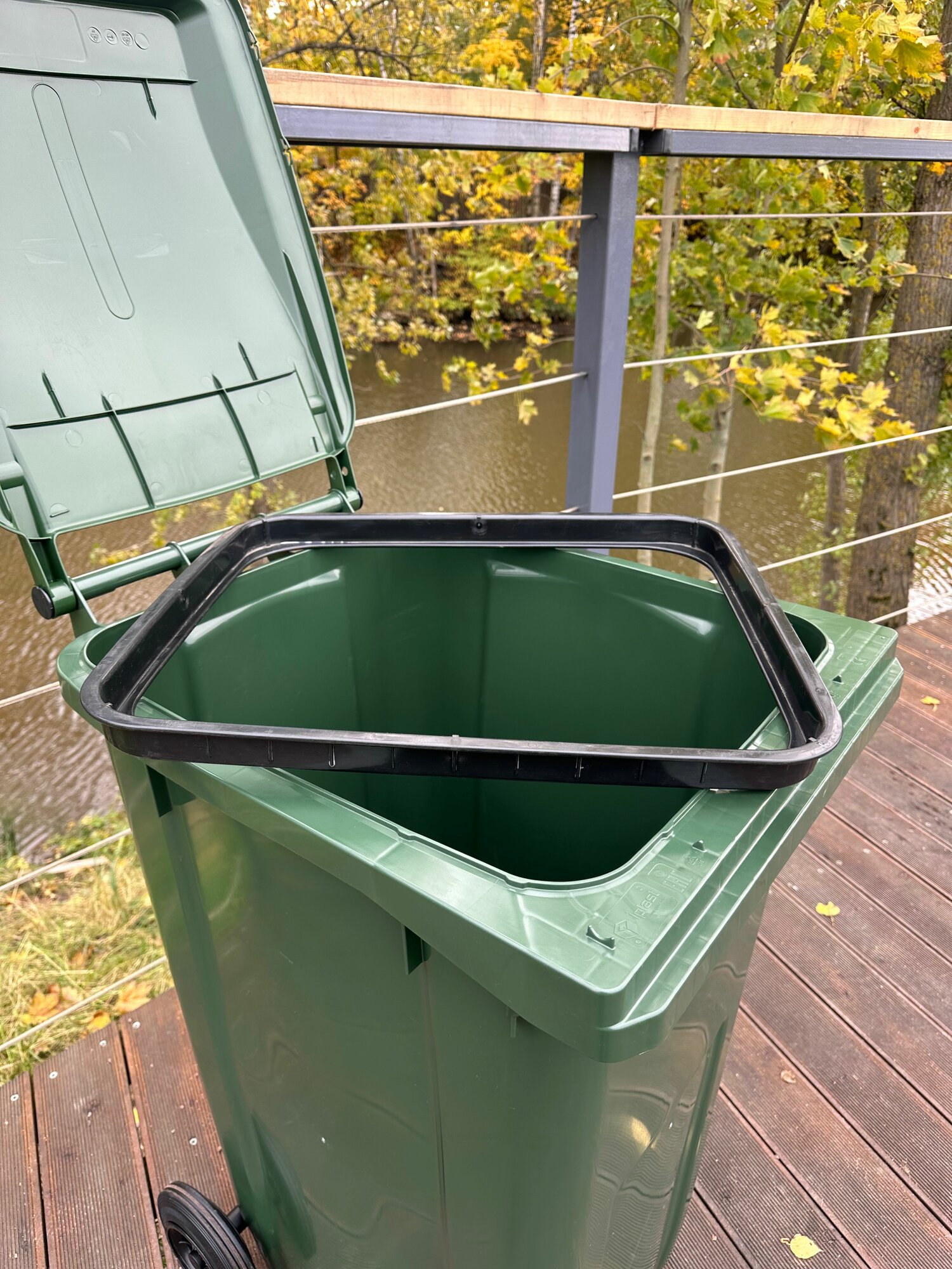 Представляем пакетодержатель для мусорного контейнера объемом 120 литров, выполненный в стильном черном цвете. Этот аксессуар создан для надежной фиксации мусорных пакетов внутри контейнера, предотвращая их выпадение и сползание, что делает процесс утилизации отходов значительно проще и чище. Пакетодержатель не только функционален, но и легко вписывается в дизайн любого интерьера или внешнего пространства благодаря своему нейтральному черному оттенку. Простота в установке и эксплуатации позволяет быстро и удобно закрепить пакет, обеспечивая эффективное управление отходами. Этот аксессуар идеально подходит для использования с нашими 120-литровыми контейнерами. При установке на контейнеры других производителей следует учитывать возможные несоответствия. Материал изделия – ПНД, выдерживающий температурный диапазон от -40°С до +50°С, а также чистку при температурах до +90°С