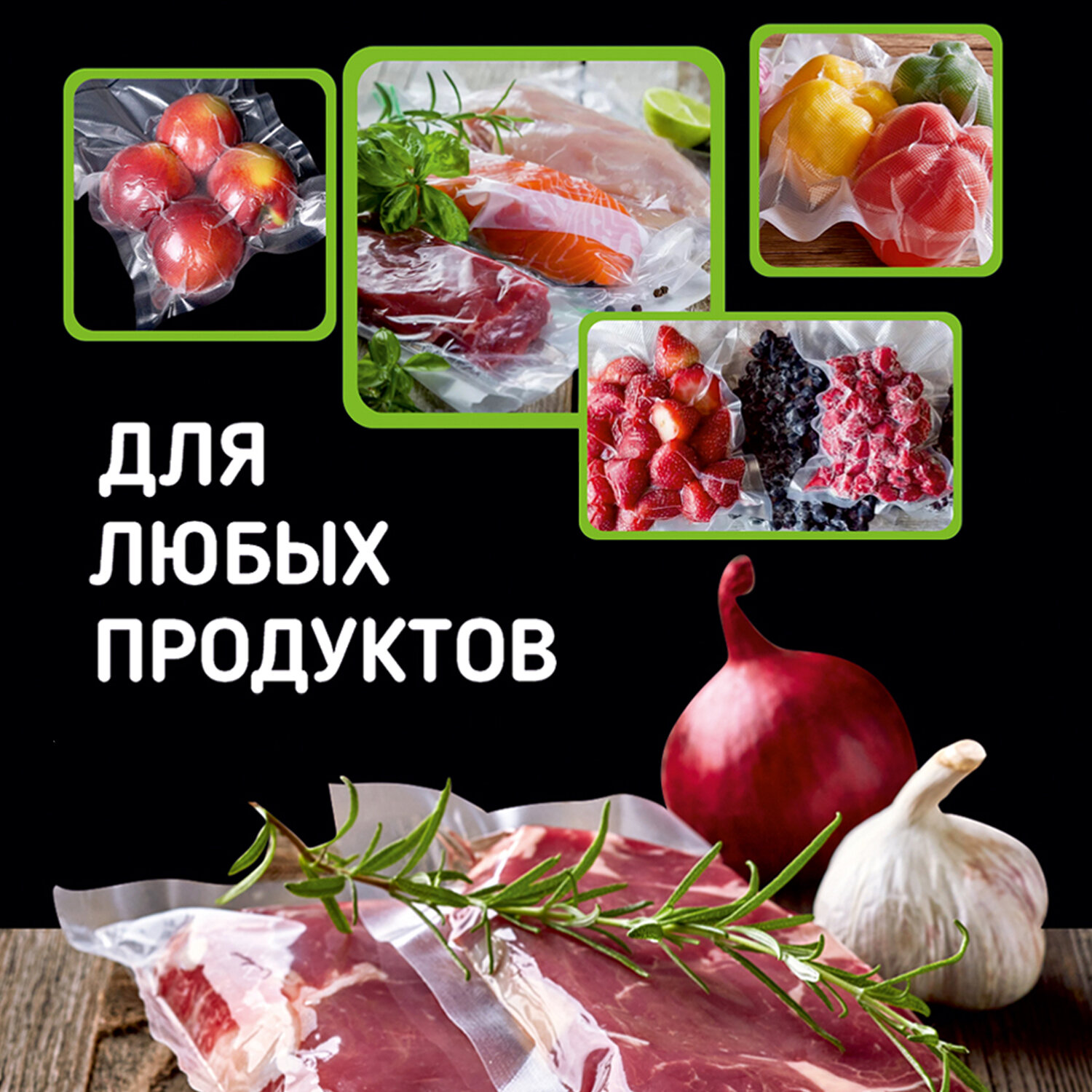 Пленка для вакууматора плотная идеально подходит для фасовки, заморозки и хранения в морозильной камере мяса, рыбы, сыра, пельменей, овощей, фруктов, ягод и полуфабрикатов.