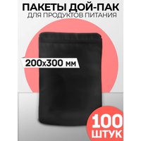 Купить Пакеты дой-пак черный металлизированный матовый 200х300 100 штук с доставкой по всей России.