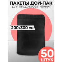 Купить Пакеты дой-пак черный металлизированный матовый 200х300 50 штук с доставкой по всей России.
