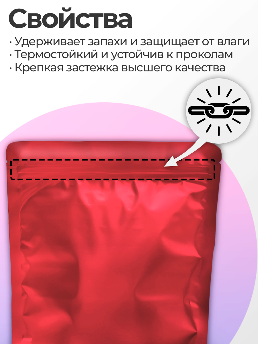 Каждый дой пак из нашей линейки изготовлен из высококачественных материалов, обеспечивающих надежную защиту содержимого. Металлизированная поверхность пакета не только подчеркивает его современный вид, но и обеспечивает отличные барьерные свойства, сохраняя свежесть и вкус ваших продуктов. Благодаря разнообразным размерам вы легко сможете выбрать именно тот вариант, который идеально подойдет для вашего товара — будь то снэки, специи, кофе или косметические средства. Наши упаковочные пакеты отлично подходят для брендов, стремящихся создать впечатляющую упаковку, которая будет вызывать доверие у потребителей. Красные, белые и черные оттенки предоставляют широкий спектр возможностей для оформления, подходящего для любого стиля и концепции. Будь вы производителем или ритейлером, наши пакетики помогут вам подчеркнуть индивидуальность вашего бренда. Благодаря технологии зиплок , ваши продукты всегда будут в сохранности Ключевые преимущества наших металлизированных пакетов :