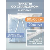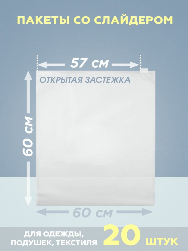 Купить Пакеты с бегунком (слайдером), 600х600 мм, 60 мкм, 20 штук, матовые, с отверстием с доставкой по всей России.