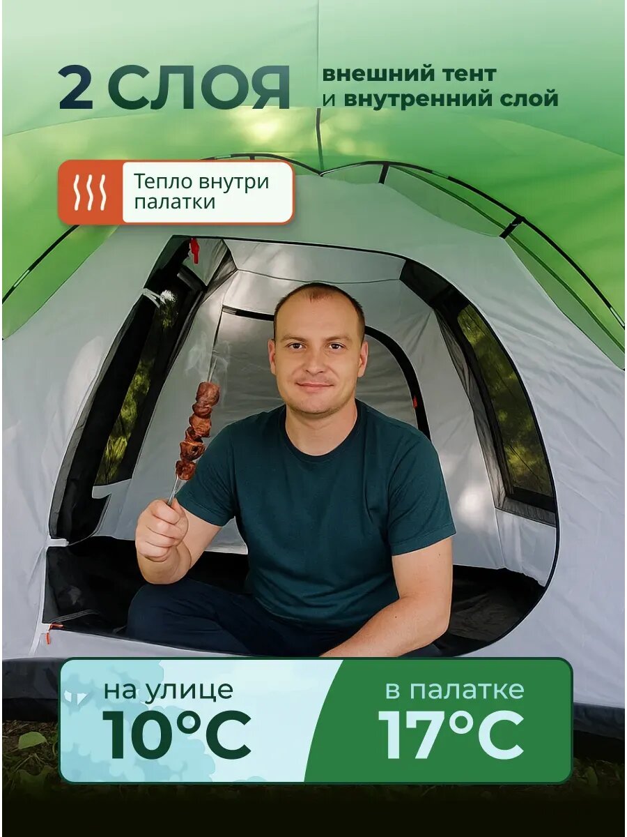 Палатка «1908», 4-местная, двухслойная, с тамбуром, серая, зеленая, водостойкость 3000мм: сравнение цен, характеристики, фото, актуальное наличие и цены.