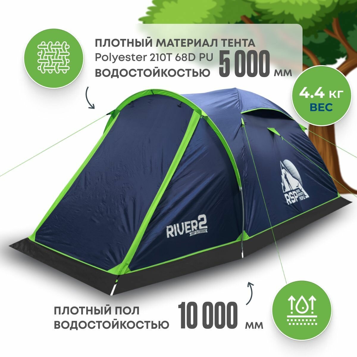Палатка 2-х местная RSP River 2 (цв. синий), 2 тамбура, водонепроницаемость — 5000 мм.: сравнение цен, характеристики, фото, актуальное наличие и цены.