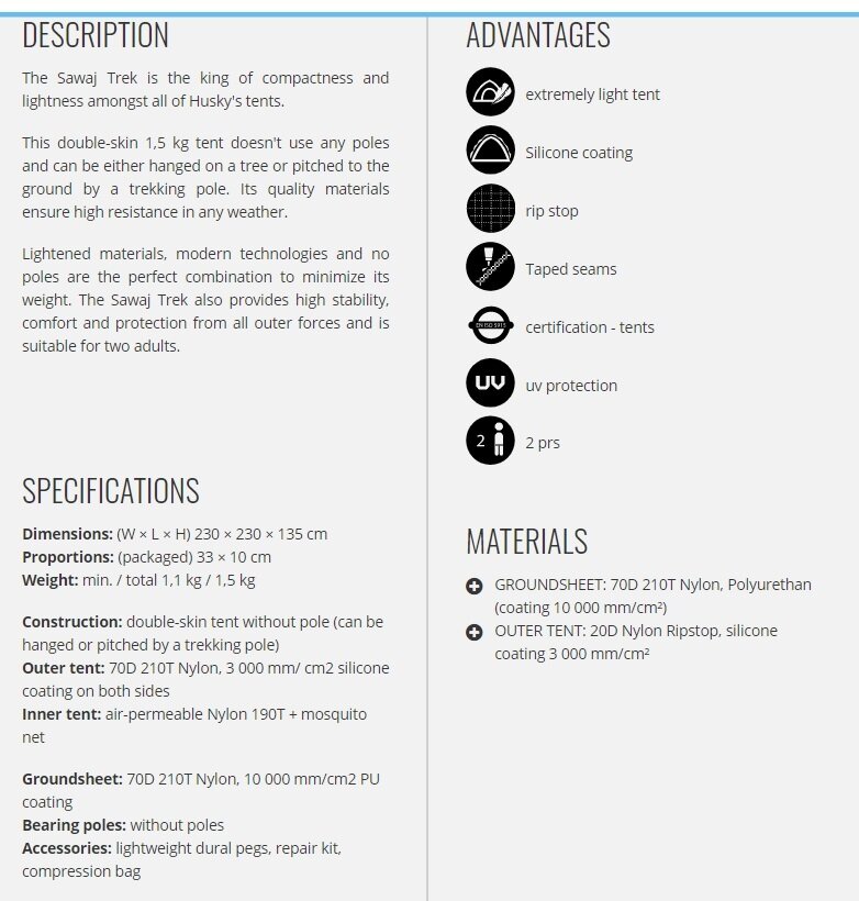 Палатка 2-х местная туристическая экстремальная Husky SAWAJ TREK 2, цвет: зеленый: сравнение цен, характеристики, фото, актуальное наличие и цены.