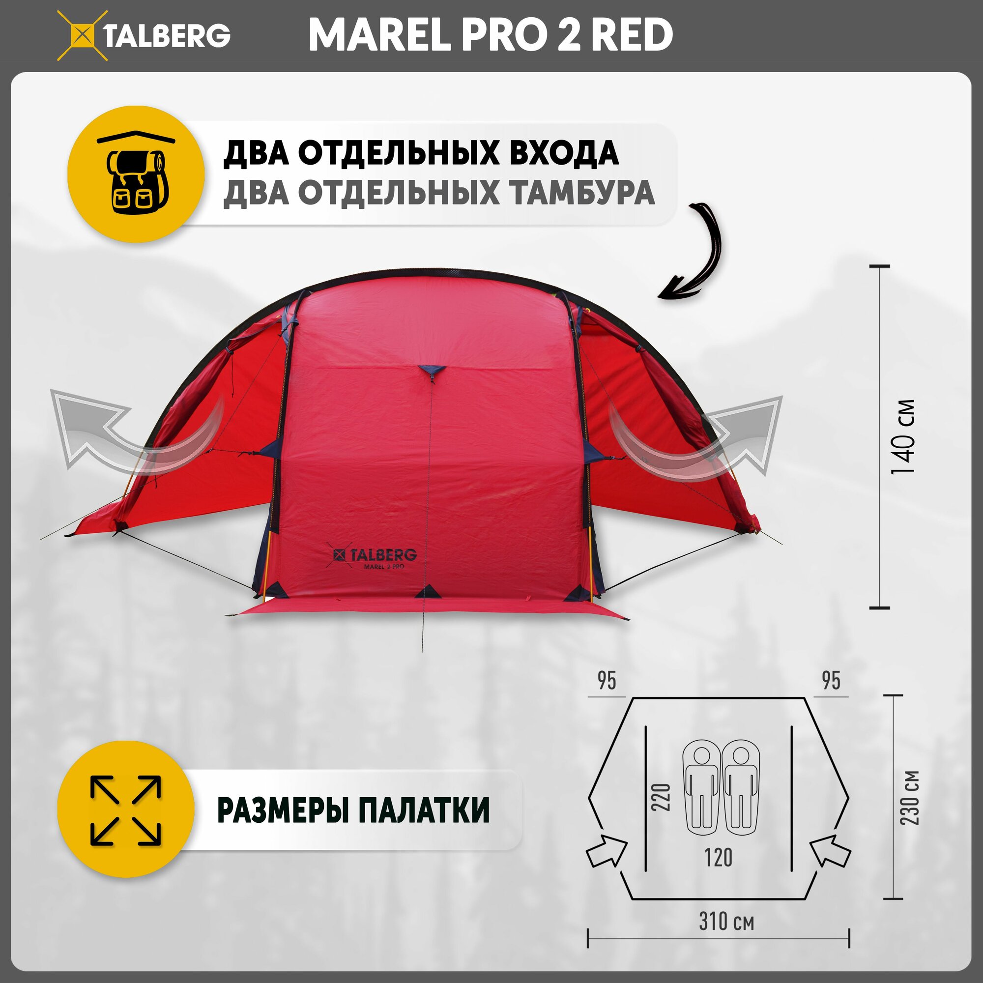 Палатка 2-х местная туристическая Talberg MAREL PRO 2 RED, цвет: красный, алюминиевый каркас, двухслойная, снежная юбка: сравнение цен, характеристики, фото, актуальное наличие и цены.